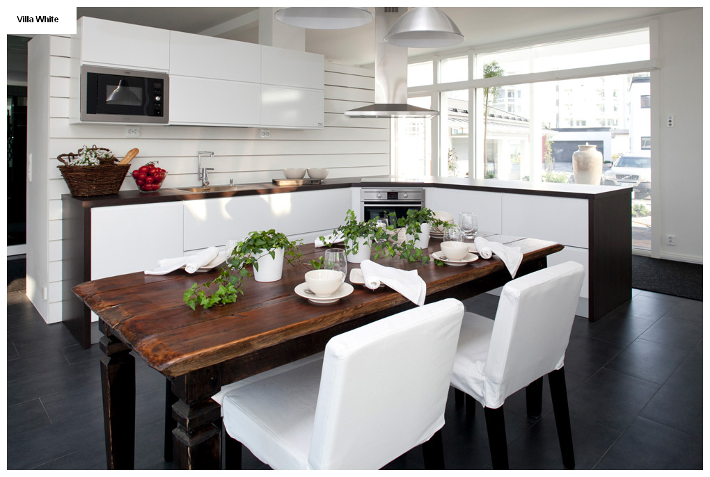 Et tätä kysynyt, mutta sanon nyt kumminkin, että noista kuvista se eka oli musta aika kamala. Siinä oli tarkoituksellisesti hommattu oikein vanhanaikainen ja kulunut pöytäpinta (mikäli se sitä edes on ollut alunperin), putsattu, puleerattu, hiottu, kiillotettu ja öljytty ja paiskattu äärimmäisen ultramoderniin ympäristöön, missä ei ole sitten yhtään mitään muuta vastaavanlaista antamaan tasapainoa ja ilmettä, ja tulos on minun mielestäni outo, jotenkin hölmö.