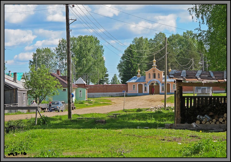 3) Uusmarttyyrien muistolle pyhitetty kappeli = ruskea hirsirakennus, vihreät kuistin pylväät, katto ja sipuli; Lokakuun vallankumouksen pyörteissä murhattujen Vasojärven munkkien hautausmaan päällä sijaitseva rakennus (The Chapel of Martyrs and Confessors of Russia):