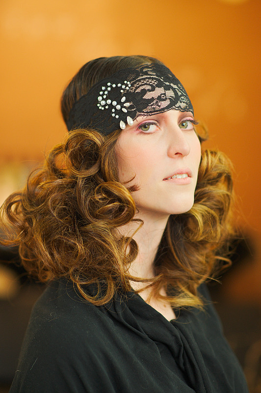 Laita joku korkea kapea hattu syvälle päähän.Tai huivi, joka kietaistaan leveänä nauhana otsaa peittämään, näin.