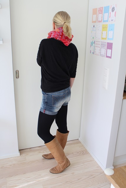 Oliko nämä olevinaan jotain arvoituksia? Eka kuva ei näy kunnolla, tokassa leggingsit, jotka on pitkän paidan ja pitkien saappaiden alla piilossa. Sitten on jotain kuvioituja hirvityksiä, joiden nimitystä en edes halua tietää.