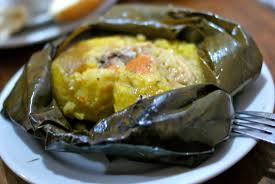 Kiinnostaa kovasti. Nyt kun olis banaanin lehtiäkin omasta takaa. Tosi, hmmmm...., saattaa olla, että en malttaisi niitä käyttää. Menettäisin banaanipuun luottamuksen, jos ensteks sitä hoivaisin ja pelastaisin kuolemalta ja sitten alkaisin lehtiä nyhtämään :)Tuhtia e-amerikkalaista pitoruokaa tai sunnuntaipäivällistä, maissijauhoista tehtyyn taikinaan leivotaan kanaa, sianlihaa, vihanneksia, maustetaan suolalla, korianderilla, kuminalla, kurkumalla jne. kääritään tiukkaan pakettiin banaaninlehteen, narulla kiinni paketti ja jättikattilassa keitetään kiehuvassa vedessä kypsäksi. Paketit otetaan vadille, vesi valutetaan huolellisesti pois banaanilehdistä, annetaan hieman jäähtyä ja avataan paketit. Tarjotaan banaaninlehdestä joka on lautasella. (Ulkomaalaisia vieraita ja etenkin gringoja pitää aina muistuttaa että banaaninlehtiä EI syödä :).