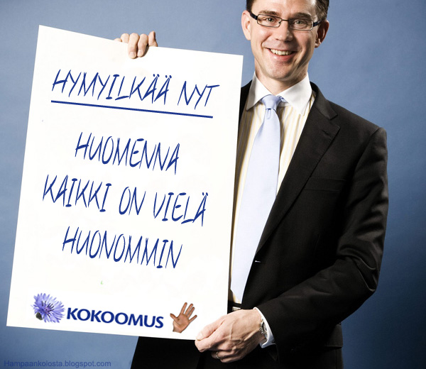 Entäs onko sinulla omia ajatuksia, vai uuninpankkopojallako meinaat pitkäänkin ratsastaa suomiessasi suomalaisia?