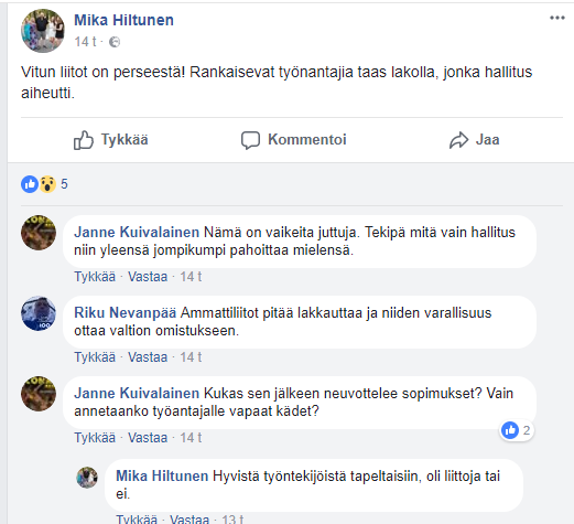 Tulipa sattumoisin eteen perussuomalaisten 3. Varapuheenjohta Mika Hiltusen (kontiolahti) kommentointi ja mielipide liitoista.
