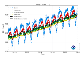 Hiilidioksiditason kiihtyvä nousu näkyy pidemmän ajan kuvaajissa selvästi.