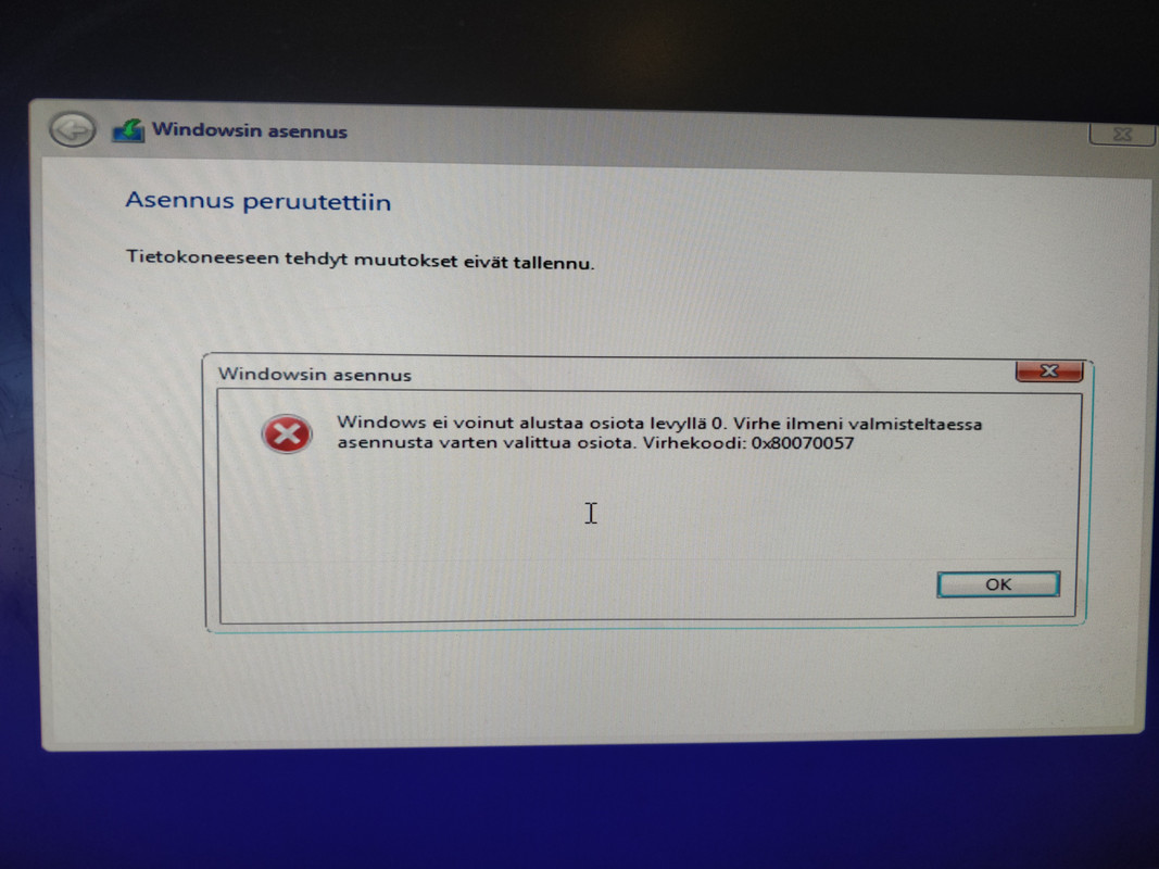 Win asennuksessa virhe jo alussa.