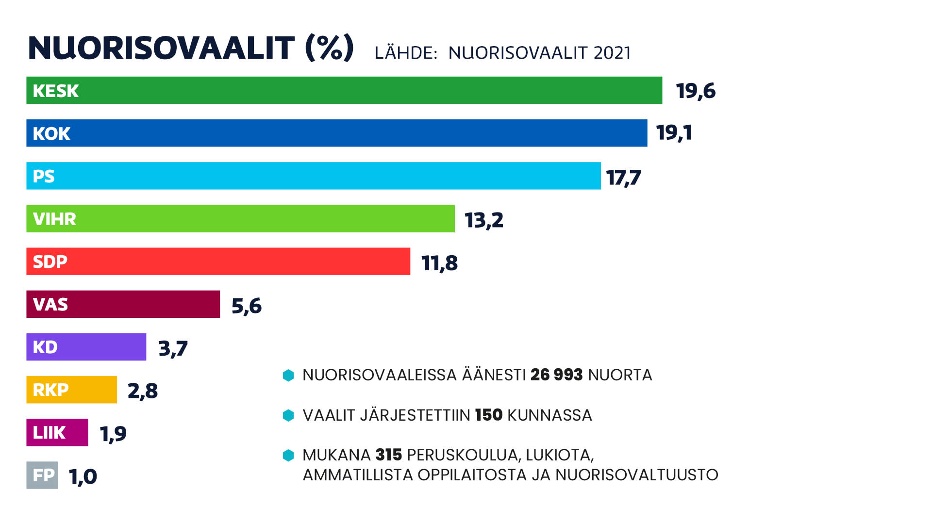 Keskustan kärkisija oli varmaan yllätys monellekin. 20 prosentilla jätti kokoomuksen taakseen ja PS:n pronssille. Ei huono tulos noillekaan.