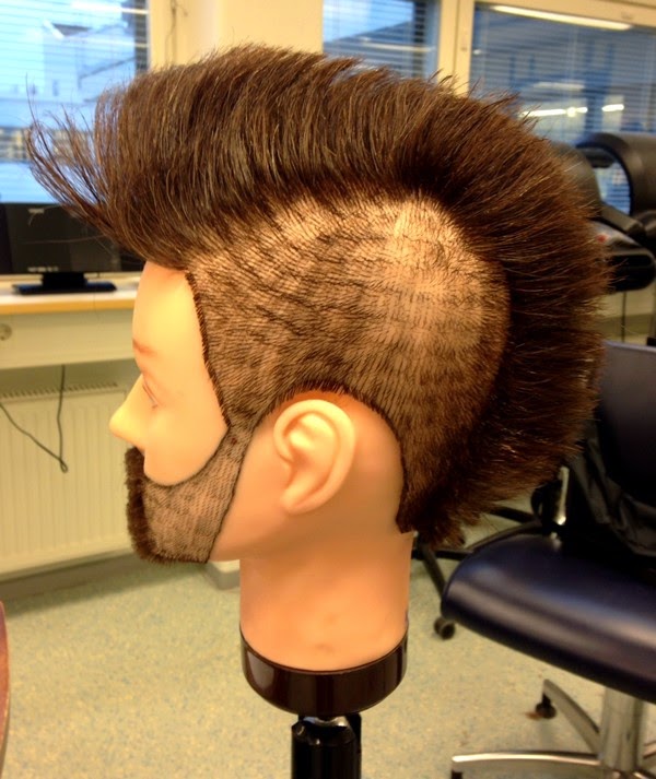 Geeliä pitää pistää ja paljon tai jotain extra strong -lakkaa, että pysyy pystyssä niin, että on niin kova, ettei tuuli ja tuiskukaan pysty heiluttamaan haivenia tai sitten vähän pehmeämpää stailia jos haluat, niin sitten vaan vähän muotoilutuotteita.Haluisin huomiseksi vaan irokeesin. En pidempään. Tämä ananas kelpaa muuten hyvin, tarkoitus vaan tehdä isäukolle jäynää. Hän kun aina nurisee hiuksistani. :)