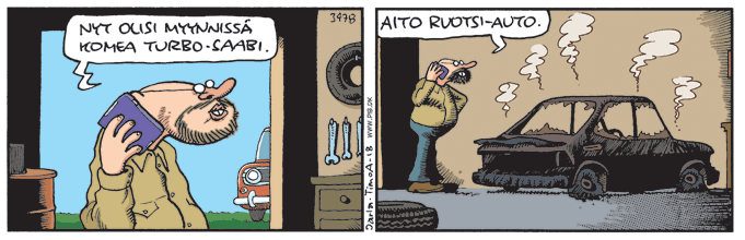 Mutta tykkäättekö te Ruotsista. Ja SAABista. Mutta ne kuuluukin aina yhteen. Ei voi tykätä toisesta ja toisest ei.