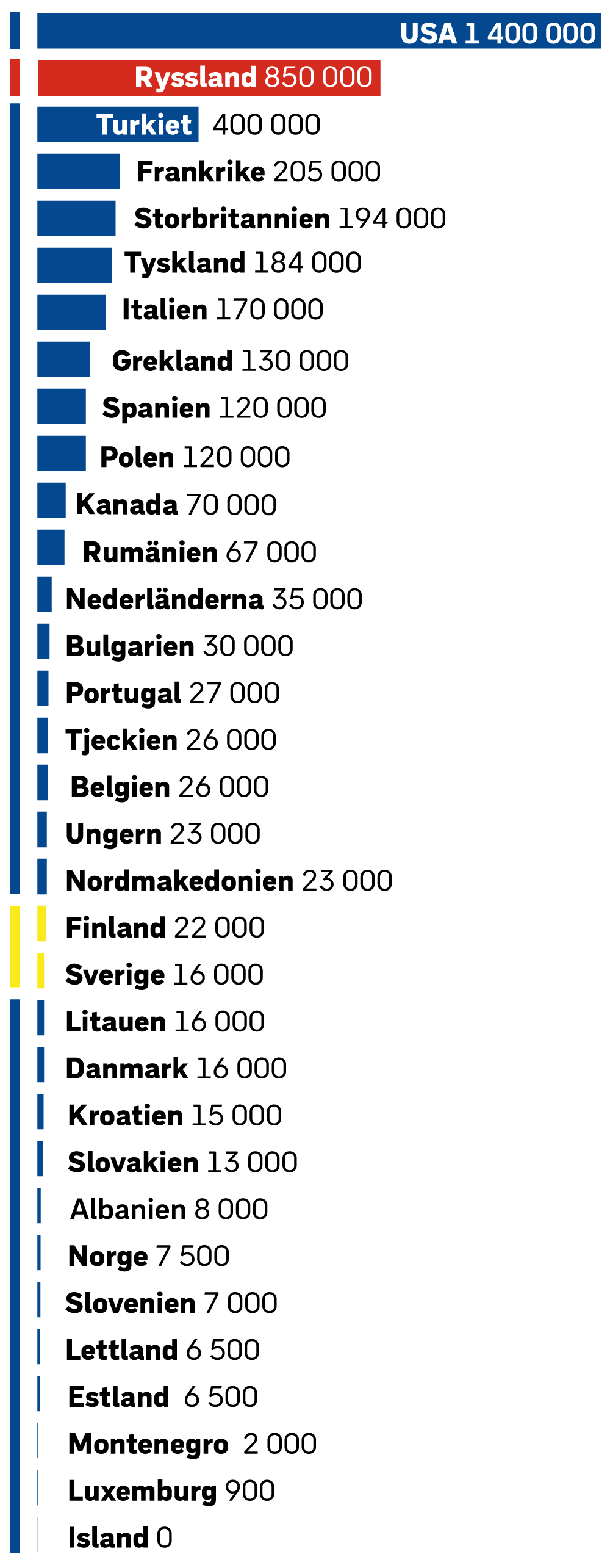 Näytän myös Venäjää, Ruotsia ja Suomea. Mukana on vain aktiivinen sotilashenkilöstö.