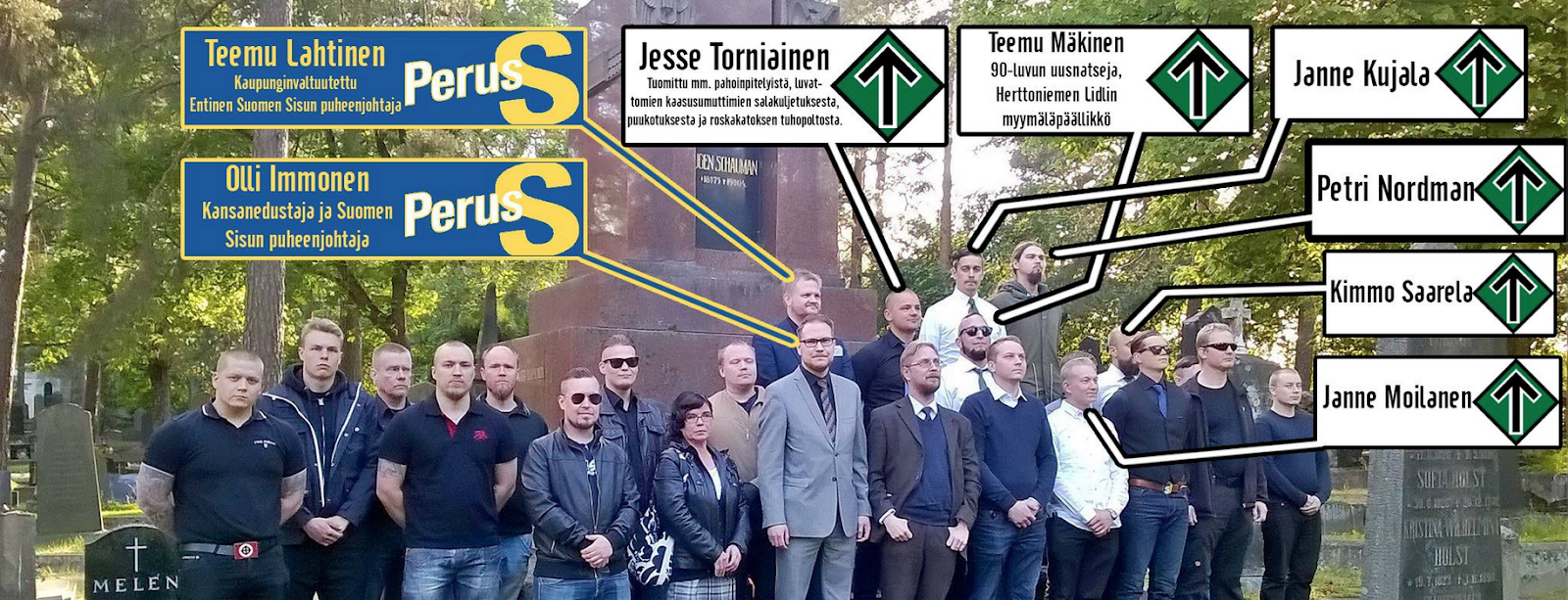 Tokihan noissa edellämainituissa järjestöissä niissäkin oli kaikissa persuja, muunmuassa Olli Immonen esiintyi uusnatsien keralla eräässä kuvassakin ja muitakin yhteyksiä on laajalti esitetty persuihin noiden järjestöjen osalta. Nyt persut vaan alkaa siirtyä vielä astetta jyrkempään porukkaan, Halla-aho ei ole enää messias eikä mestari, Purrasta puhumattakaan...