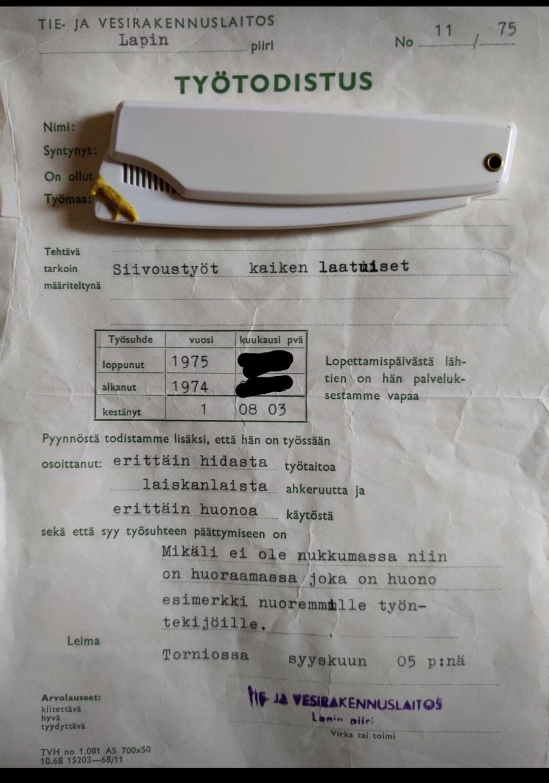 Suomalainen työnantaja kirjoittaa työtodistuksen: