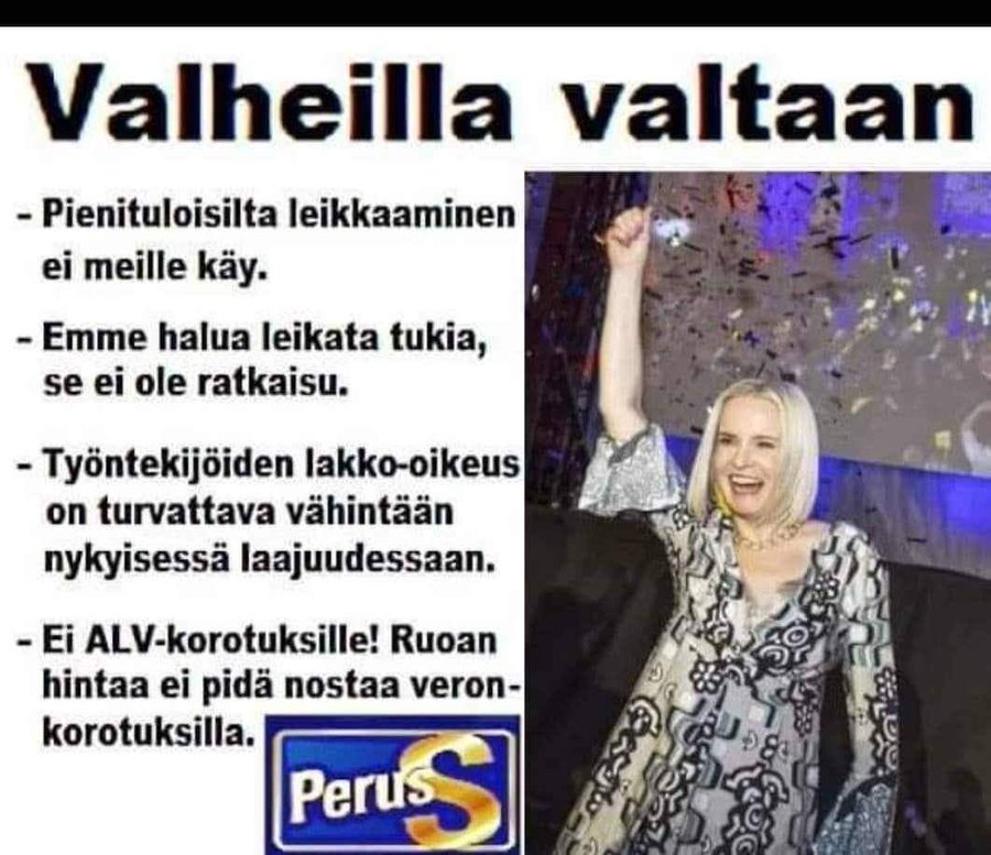 se on pientä mitä persut tekevät mutta sosiaalidemokraatit ne vasta oikeita maanpettureita ovat, sosialistit ovat erityisen pahoja ja kavalia pettureita. Katso kenet Tarja palkitsi
