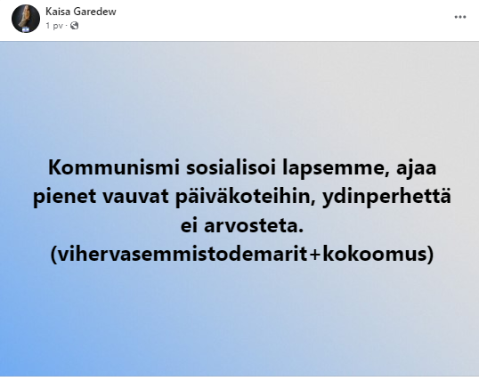 pitäisikö mallia sitten ottaa pohjoiskoreasta tai venäjästä , kyllä sosialismi kommunismi maailman laajuinen viheliäinen vitsaus .