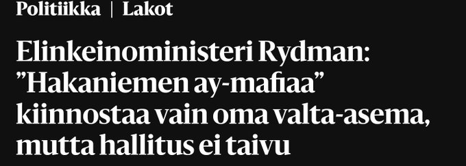 Kokoomus on ollut tässä asiassa edellä kävijä. Kannatti natoon menoa vuosikymmenet.Hyvin harva pressaa myöten vielä pari-3 vuotta sitten ei kanattanut natoa. Muutama kapiainen vain silloin tällöin vihjaili.Beesattiin ruottia, mutta toisinhan tuossakin kävi. Ilman demareita tämä olis surkea takahikiä. Luukekko oikeasti että oikeisto ajaa työläisten asioita, ei veliseni, mutta maailma muuttuu eskoseni aika kiivaaseen tahtiin.