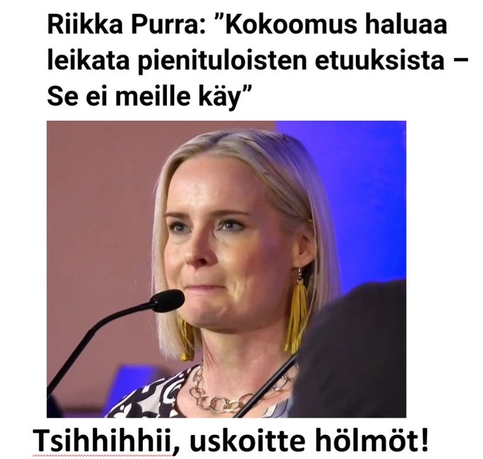 Ärsyttävää Riikan mollaaminen. SDP teki niin paljon velkaa, että oikein hirvittää. VAS JA SDP vain jakavat rahaa, ilman mitään järkeä.