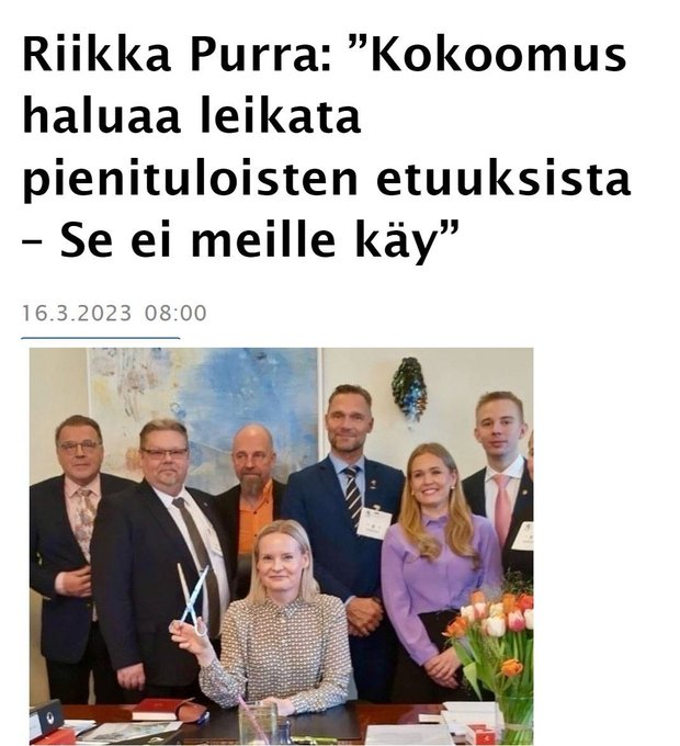 Sosiaali- ja terveysministeri Kaisa Juuso yllättyi hallinnonalaansa koskevasta leikkauspäätöksestä. Tapa jättää vastuullinen ministeri säästöpäätösten valmistelun ulkopuolelle on demokratian kannalta arveluttava.-> röyhkeää sikailua,Orpo on täys lapanen.Hiiret hyppii pöydällä - Anonyymi
