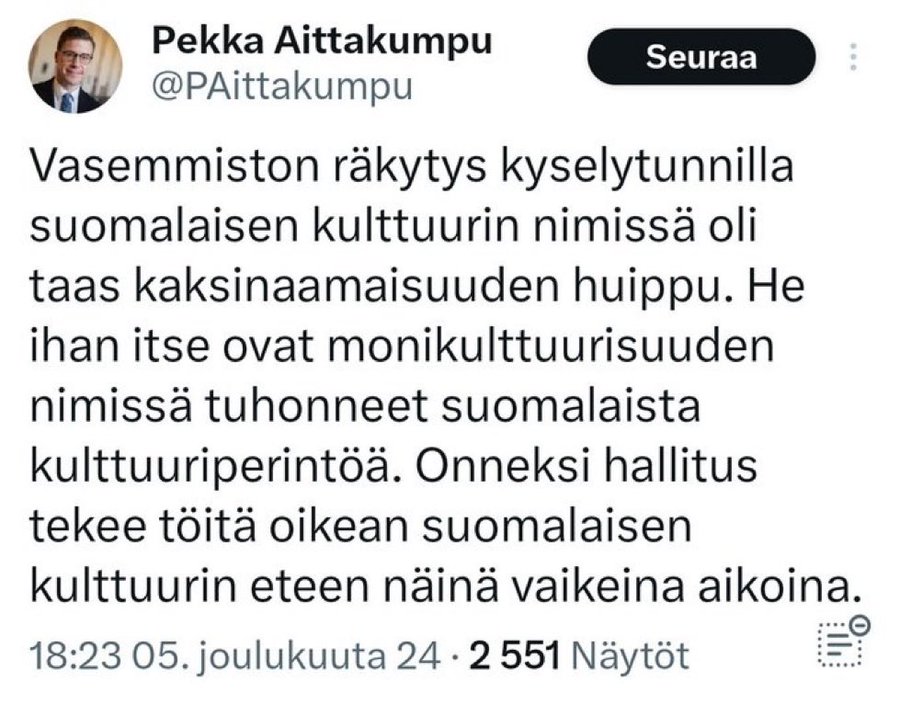 Näin nopeasti muuttuu keskustalainen vanhalestadiolaisuskovainen pappismies halvaksi paskapopulistiksi joka valehtelee vasemmiston tuovan monikulttuuria Suomeen tuhoamaan suomalaista kulttuuriperintöä.