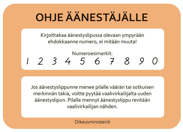 Näin kirjoitat numerot oikein äänestyslippuun.