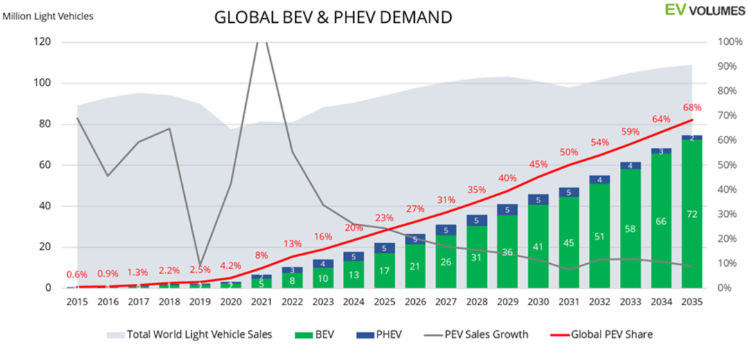 Sähköautojen maailmanlaajuiset myyntiennusteet tulevina vuosina.