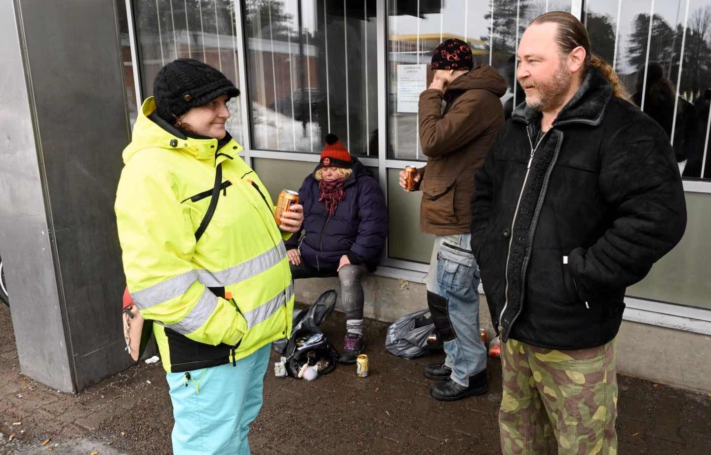R-kioskin edessä on kourallinen miehiä ja naisia Rainbow-oluttölkit kädessään. Kello on hieman yli kymmenen aamulla, ja oppaaksemme Karhuvuoreen lupautunut Petri Rissanen on juuri ehtinyt sihauttaa auki päivän ensimmäisen oluensa.