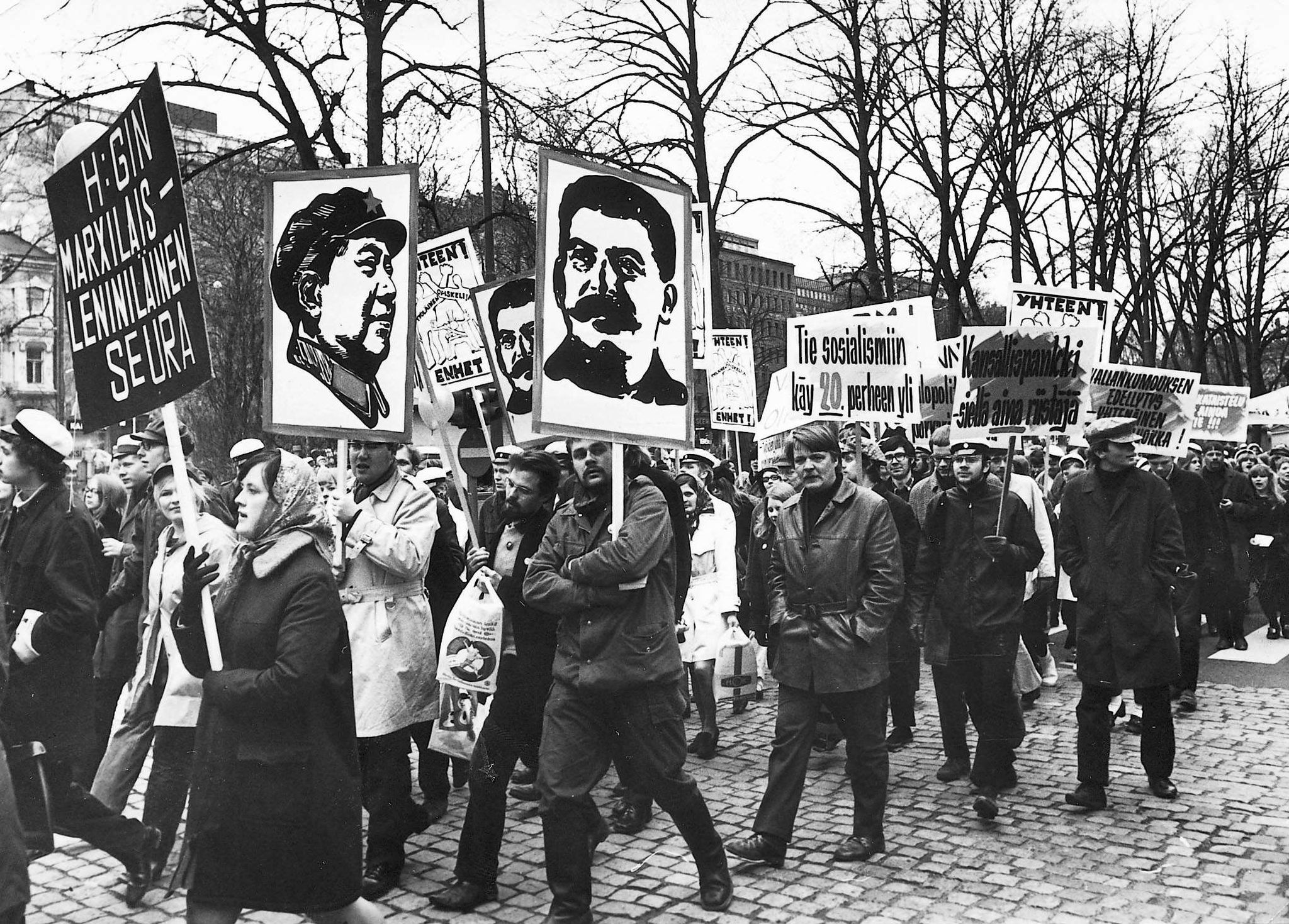 -Kommunisteja vappumarssilla Helsingissä vuonna 1969.