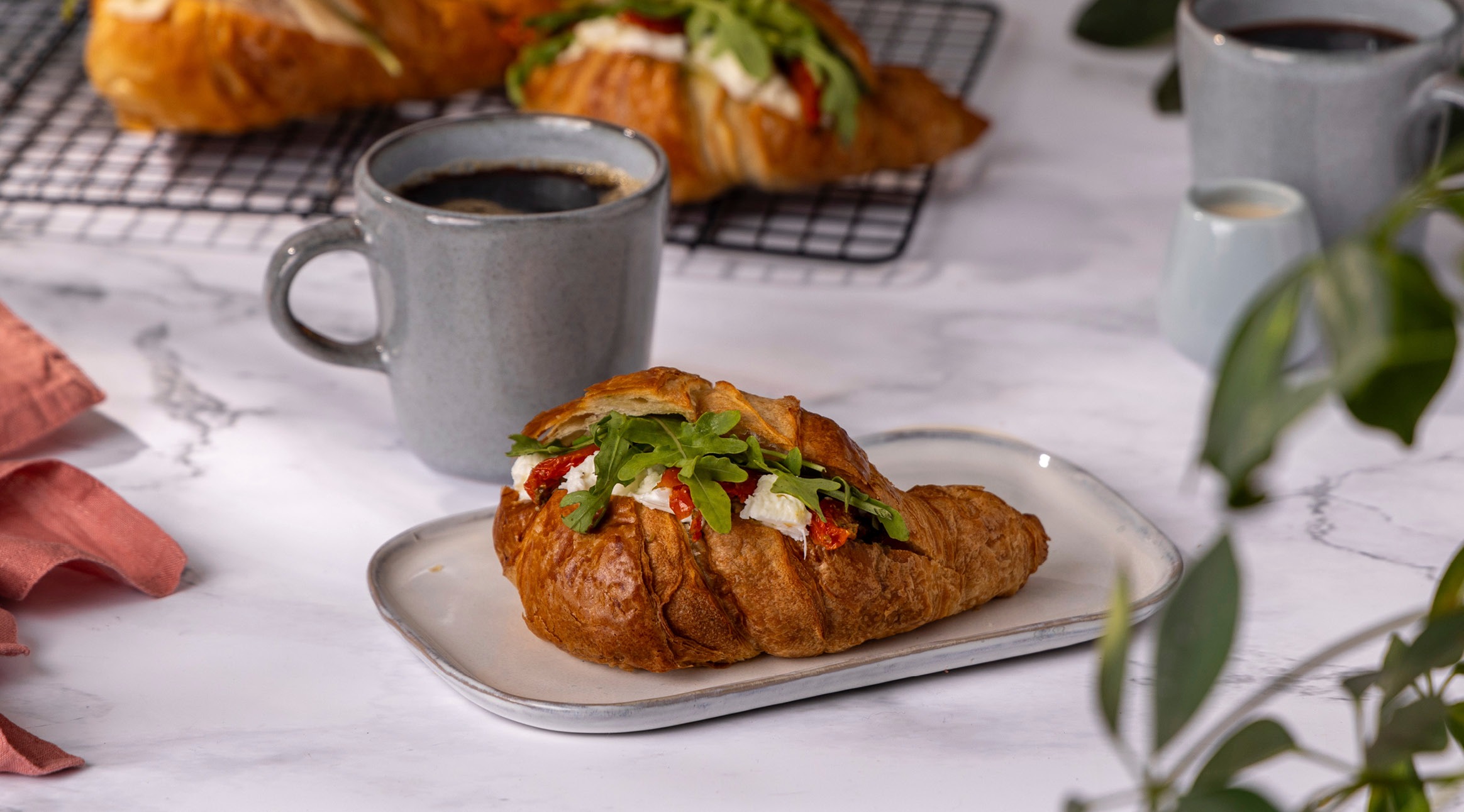Minä join äsken teetä croissantin kera, ja tarjoilen samaa sinullekin, ole hyvä!