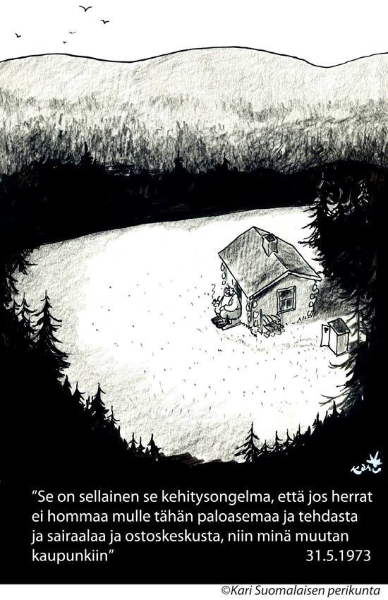 Tässä kansan pitäisi ottaa vastuu, ja muuttaa mettäkyliltä keskustoihin, palvelujen ääreen. Vain tällä tapaa saadaan Suomi pelastettua. Mitä pidempään kansa haluaa pitää kynsin hampain kiinni siitä, että saavat asua mettäkylillä, ja sinne pitää yrittää järjestää infraa ja palveluita, vaikka nyt ihan sähköinfran yms muodossa. Niin se kuluttaa ihan hirvittävästi Suomen resursseja, eikä anna takaisin mitään.