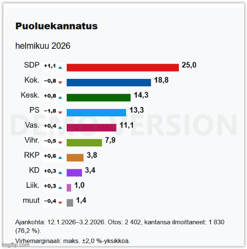 Onks Teijoo näkyny? PS−1,8 % PS menettää työväen kannatusta