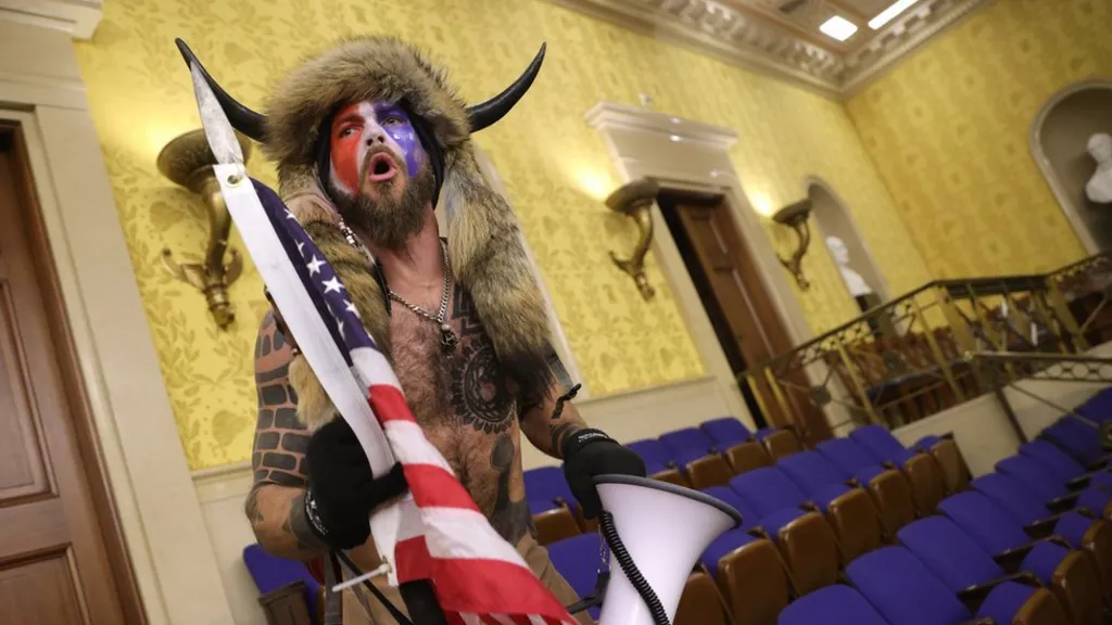 Mene ja tiedä ... ainakin joku Trumpisti - sarvipäinen KUONA SHAMAANI riehui kongressitalossa.