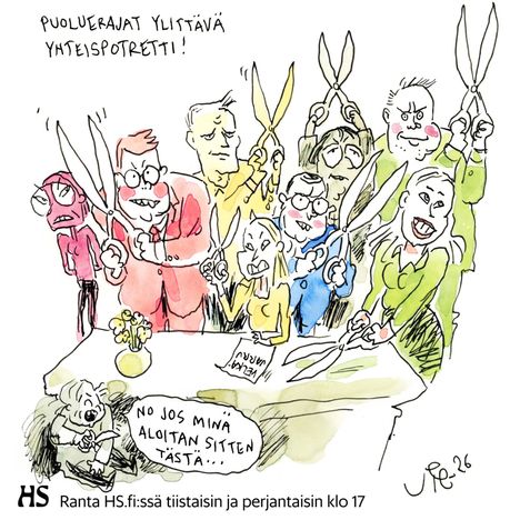 Kerrankin Rannalta puolueeton pilapiirros ja mikä oleellisinta faktapohjainen. Sillä erolla että Koskela saksii muiden tavalla hallitukseen puolueensa nostaessa. Minkä tekee koska on tuplaamassa vassarien paikkamäärät jos ei ihmeitä tapahdu. Asian minkä sinun isäksi kutsuma Soinikin esille toi helvetinmoisella jälkiviisaudella. Käy taas hitailla ottaen kunnian asioista jotka muut toi esille paljon aikaisemmin kuin hän itse.
