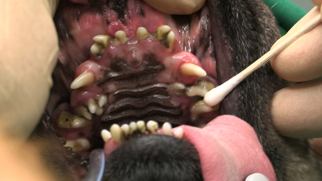 Mopseilla ei ole kuonoa, mutta silti niillä on täsmälleen saman verran kudoksia ja hampaita - paaaaljon pienempään tilaan tungettuina. Mopsin hampaat: